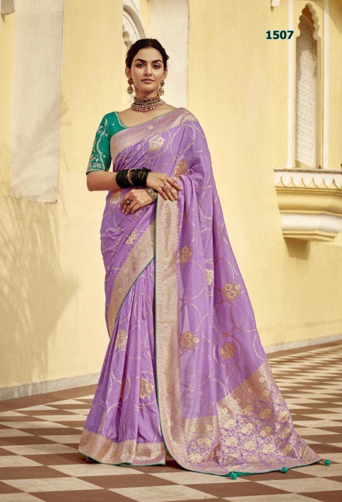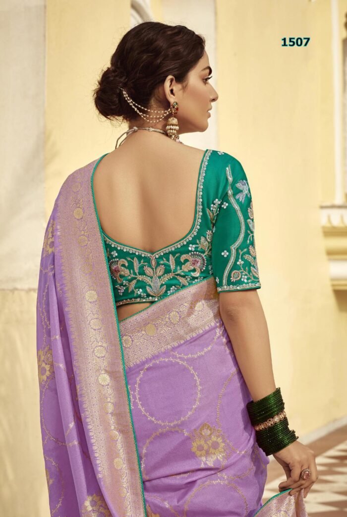 Fabric :- Pure Dola Silk With Tussles On Pallu & Designer Embroidered Fancy Blouse