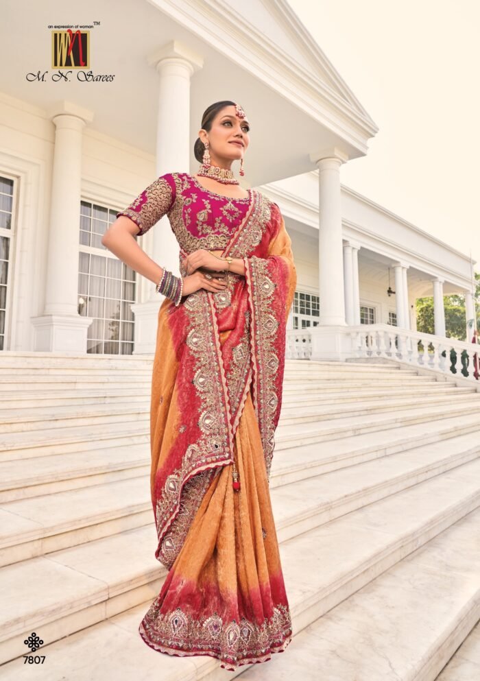 M.N.Sarees Shahi Poshak Bridsal Party wear saree with beautiful Embroidery work.