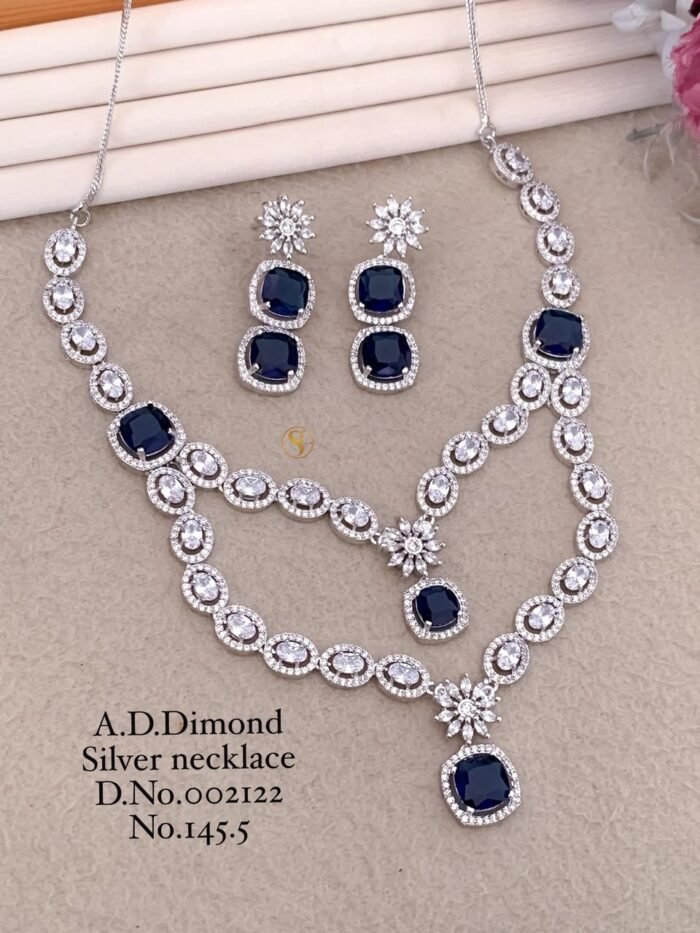 Be the first to review “Silver Polish American Diamond Necklace Set” Cancel reply