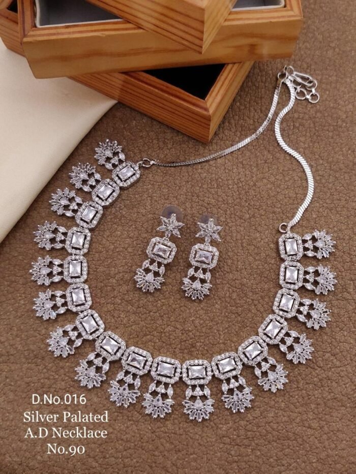 Be the first to review “Silver Polish American Diamond Necklace Set” Cancel reply