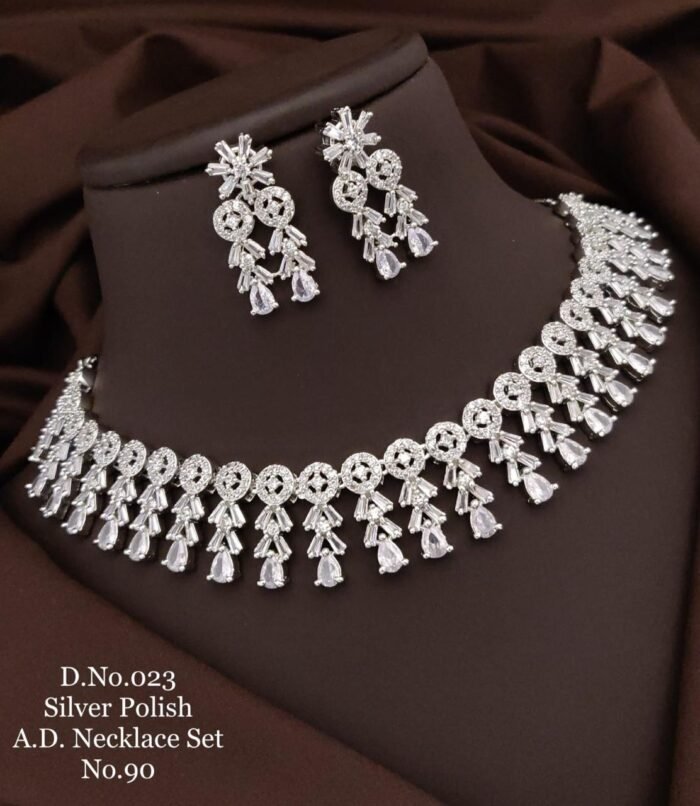 Home Jewelry Necklace Silver Polish American Diamond Necklace Set
