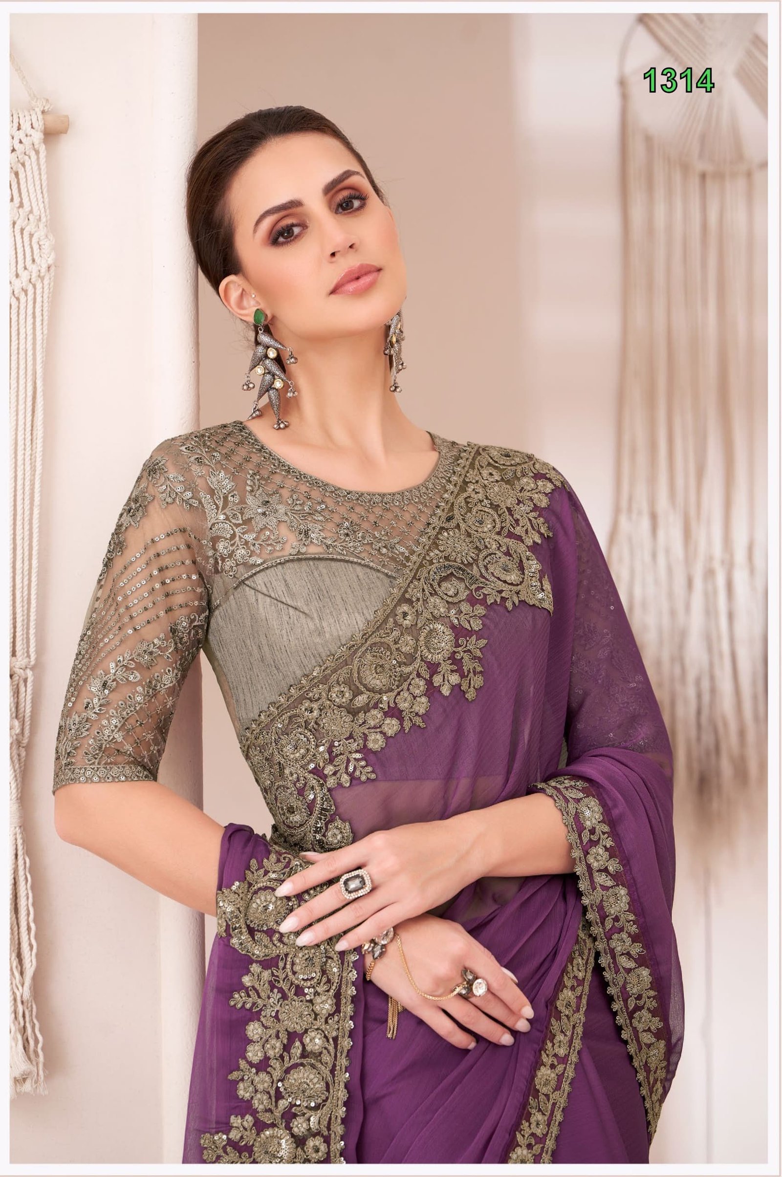 TFH PRESENTS DESIGNER PARTYWEAR EMBROIDRY WORK CHIFFONSAREE